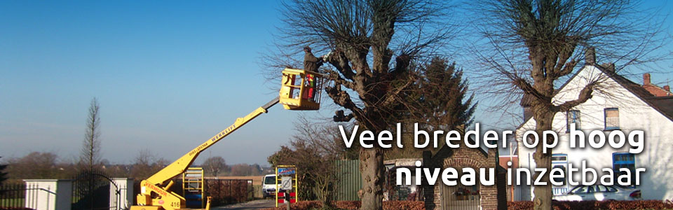 Onze kernactiviteiten: o.a. snoeien m.b.v. een hoogwerker als ook d.m.v. klimtechnieken, vellen/rooien, versnipperen en afvoeren van snoeiafval.